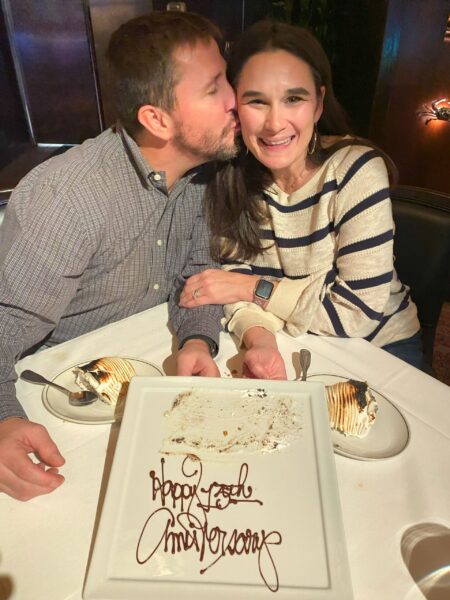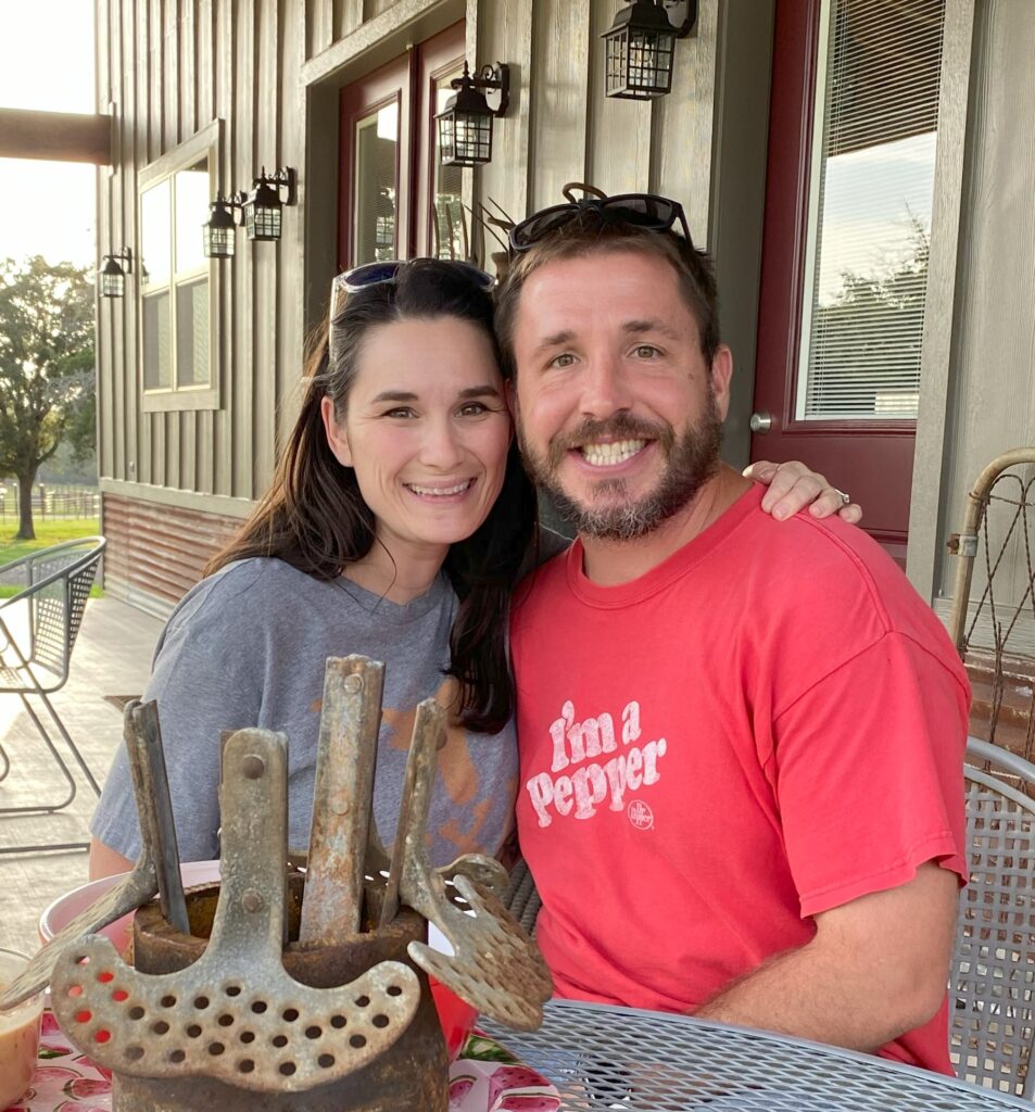 We met in 2008 when Facebook had apps that became the precursors to today’s dating apps. After chatting online for a few weeks, we decided to meet for dinner after church. I (Mindy) spent the whole service praying Clay wouldn’t show up because I was so nervous. But he did show up, and we had a great evening. We talked for hours over queso and tacos. I was disarmed by his lack of pretense, his willingness to show me who he really is and not cover up rough patches in his life. We hit it off that night and began dating exclusively. A few months later, Clay wanted to be baptized at our church, and he asked me to do it. That afternoon was the first time our parents met each other, and it is a wonderful memory. After dating for about a year and a half, Clay proposed and we were married just three months later.