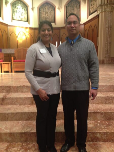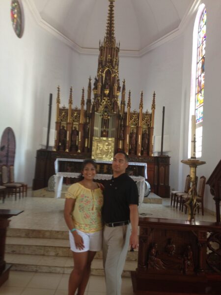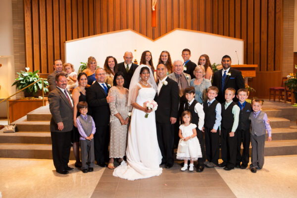 The following Easter, Joel took Reena to the Easter Vigil, which is the Saturday before Easter Sunday. She learned about the RCIA process where she could learn about the Catholic Faith and be confirmed as a Catholic. That fall, she enrolled in the program and Joel sponsored her. As they went through this beautiful journey together, Joel proposed that following Fall. The following Easter, Reena was confirmed as a Catholic, and Reena and Joel were married that Summer.