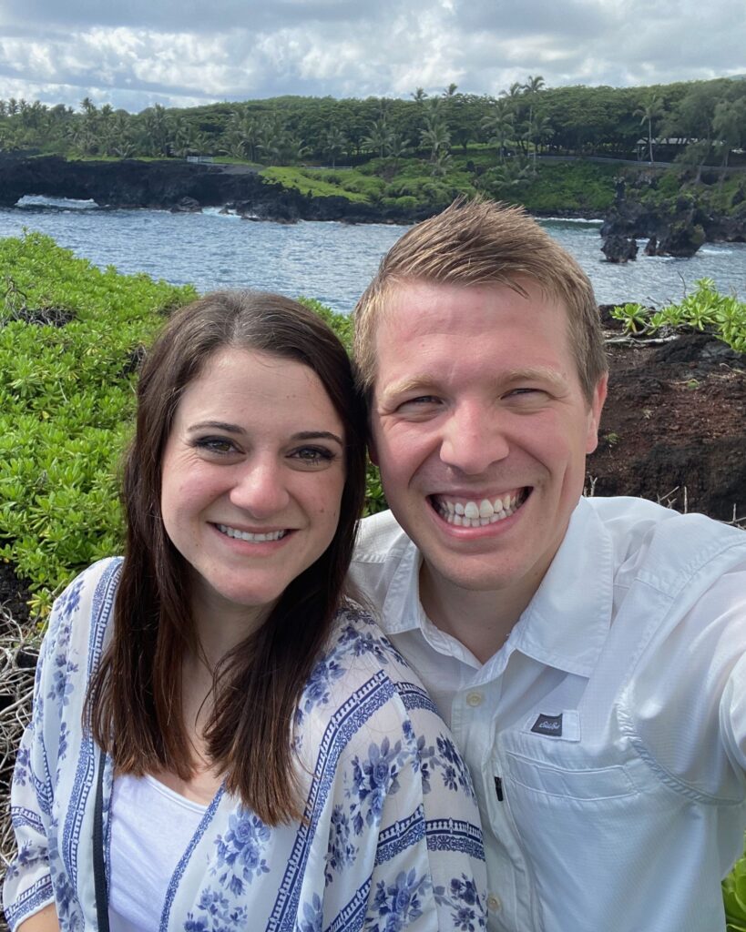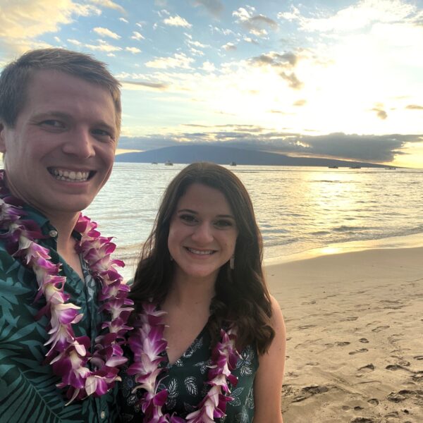 In 2015, while working as chemical engineers for the same company at different locations, we were both sent to a training session. Amy, true to form, got lost trying to find the training room. When she finally walked in, Will immediately noticed her and thought she was cute. During introductions, he realized they lived in the same area, which sparked a connection. That evening, Will invited Amy to dinner with another coworker. At dinner, his big, warm smile and gentlemanlike charm attracted her, especially when he offered her a taste of his food—the true way to her heart.